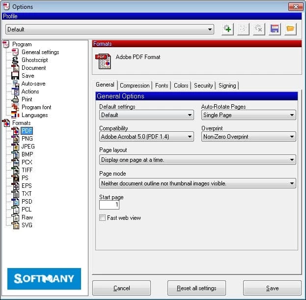 Program son derece çok yönlü ve iyi tasarlanmış olup, kullanıcıların farklı önceden tanımlanmış PDF yönetim yapılandırmalarına hızlı bir şekilde geçiş yapmak için kullanıcı profilleri oluşturmalarına ve özelleştirmelerine olanak tanır; örneğin;